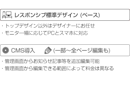 セミオーダーWEBデザイン+CMS導入+お知らせページ編集可能のサイトは、ご要望の仕様やページ数によって変動します。